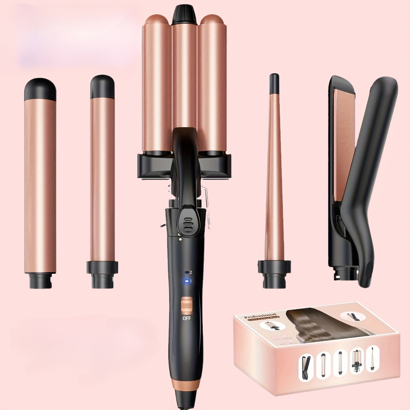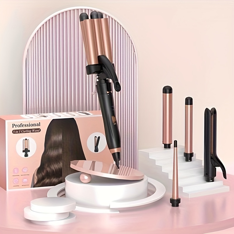 3-Cijevna Uređaj za Kovrčanje, 5-u-1 Uređaj za Kovrčanje s Ravnalom, Podesivim Valovima, Uređajem za Kovrčanje i 2 Spojnice – Ljupki Poklon za Valentinovo ili Božić